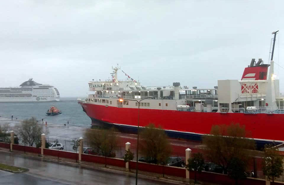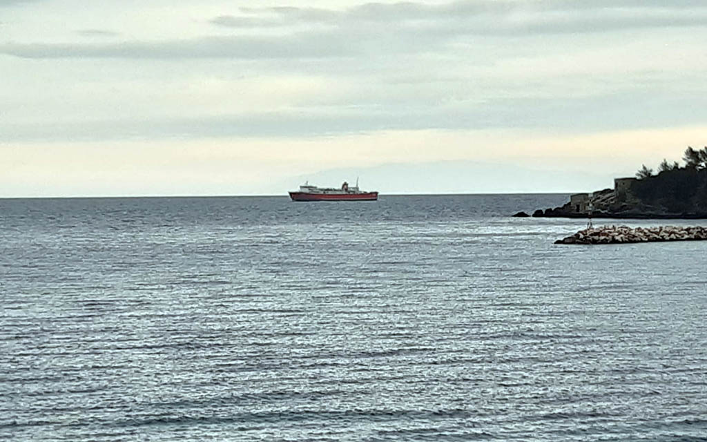 Το πλοίο περνά μπροστά από το λιμάνι του Πόρου στην Κεφαλονιά, κατευθυνόμενο προς Κέρκυρα το απόγευμα της Παρασκευής