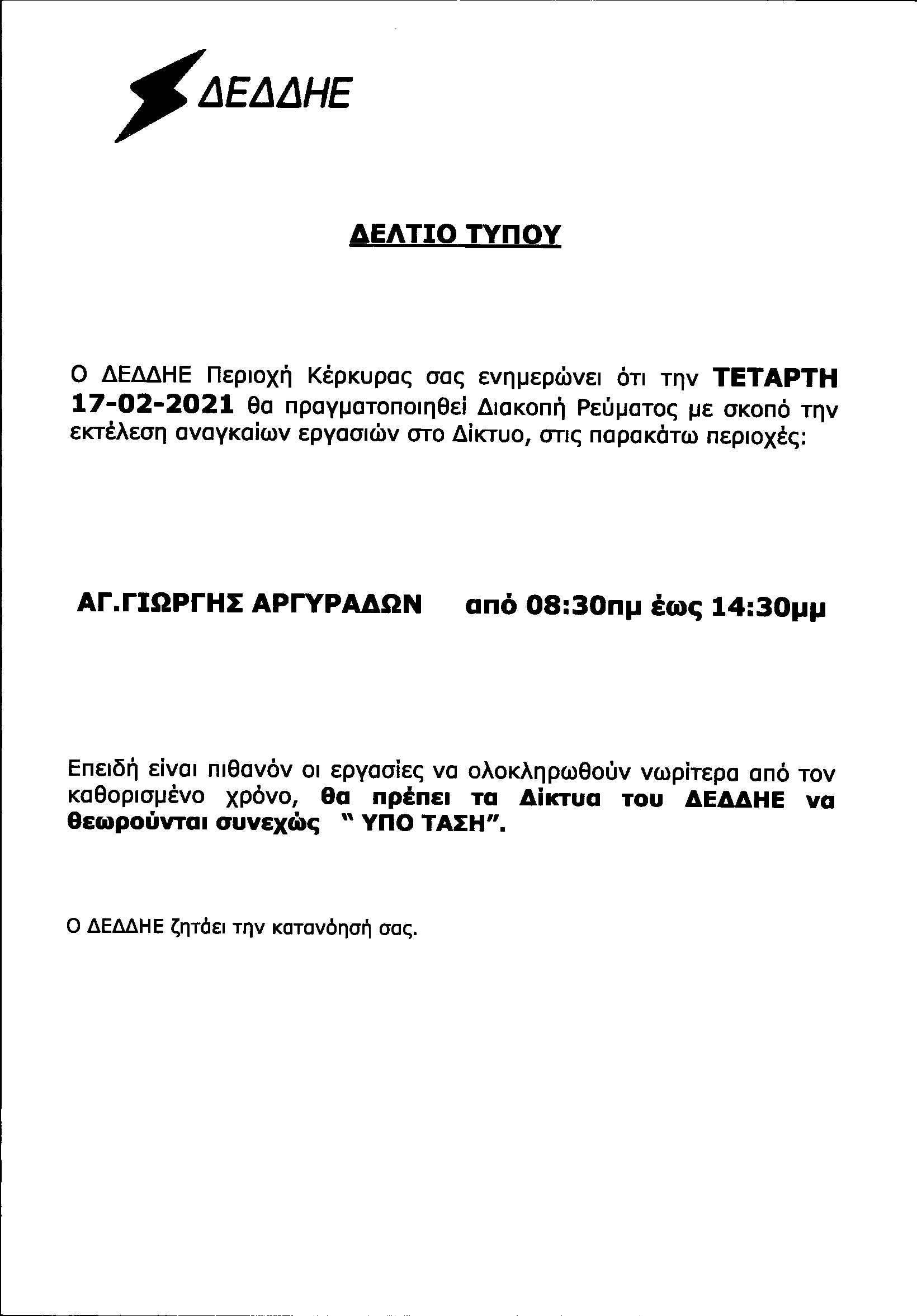 ΚΟΙΝΩΝΙΑΕΛΕΥΘΕΡΟΕΙΔΗΣΕΙΣ Διακοπή ρεύματος στον Άη Γιώργη Αργυράδων Η διακοπή θα πραγματοποιηθεί την Τετάρτη, λόγω εργασιών του ΔΕΔΔΗΕ στο δίκτυο. Last updated: 15/02/2021 16:35 CorfuPress.com Published: 15/02/2021 Share SHARE Η διακοπή θα πραγματοποιηθεί την Τετάρτη, λόγω εργασιών του ΔΕΔΔΗΕ στο δίκτυο. Διακοπή ρεύματος τη Δευτέρα-Δείτε που Που θα γίνει διακοπή ρεύματος την Τετάρτη Που θα γίνει διακοπή ρεύματος την Τετάρτη Που θα γίνουν προγραμματισμένες διακοπές ρεύματος το διάστημα 23-25 Αυγούστου Έρχεται διακοπή ρεύματος στη Βόρεια Κέρκυρα Share This Article Facebook Whatsapp Whatsapp Email Copy Link Print Previous Article Αυλωνίτης: Καμία έκπτωση στην υγειονομική προστασία των πολιτών Next Article Ο Αυλωνίτης για την Παγκόσμια Ημέρα κατά του παιδικού καρκίνου Δεν υπάρχουν Σχόλια Δεν υπάρχουν Σχόλια Αφήστε μια απάντηση Ακύρωση απάντησηςΗ ηλ. διεύθυνση σας δεν δημοσιεύεται. Τα υποχρεωτικά πεδία σημειώνονται με *Σχόλιο * Όνομα * Email * Ιστότοπος Αποθήκευσε το όνομά μου, email, και τον ιστότοπο μου σε αυτόν τον πλοηγό για την επόμενη φορά που θα σχολιάσω. ΑναζήτησηΑναζήτησηRecent PostsΌλα τα μάτια στον Θοδωρή, τον καπετάνιο μας! Τη Δευτέρα 22 Σεπτεμβρίου γιορτάζει… Σαν Σήμερα 22/9: Τα σημαντικότερα γεγονότα… Η πρόγνωση του καιρού Έφηβοι Ιονίου: Με περίπατο, συνεχίζουν στο Rising Stars! Recent CommentsΧωρίς σχόλια για εμφάνιση.