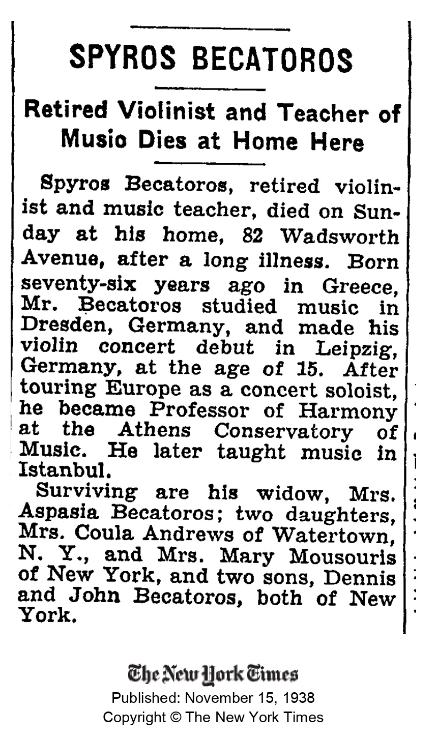 Οι «New York Times» αφιέρωσαν στήλη τους στον θάνατό του. Σε ηλικία δεκαπέντε ετών, όπως ανέφεραν, είχε πάρει μέρος σε κοντσέρτο στη Γερμανία.