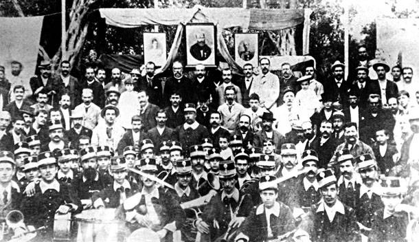 Η κερκυραϊκή Φιλαρμονική «Μάντζαρος» ιδρύθηκε -εδώ εικονίζεται τα τέλη δέκατου ένατου αιώνα σε εκδρομή σε προάστιο της πόλης με την ιδρυμένη το 1887 συνδικαλιστική κίνηση «Εργατική Αδελφότητα»- από σοσιαλιστές του νησιού. Το 1890, ως ψυχαγωγικός συνεταιρισμός σε πρώτη φάση. Μισόν αιώνα περίπου μετά την ίδρυση της Παλαιάς, πρώτης Φιλαρμονικής του νησιού, όπου φυσικά τον πρώτο λόγο είχαν φιλοπρόοδοι λόγιοι αστοί, μεταξύ των οποίων και ο φίλος του Σολωμού και μέλος της ομάδας που εξέδωσε τα «Ευρισκόμενά» του το 1859 Πέτρος Κουαρτάνος, ο οποίος, αξίζει να σημειωθεί, είχε διωχθεί από τους Βρετανούς για τη βοήθεια που προσέφερε σε φίλους του Σολωμού και του Μάντζαρου Ιταλούς πολιτικούς