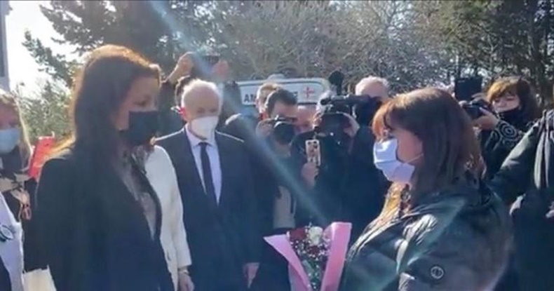 Με μια αγκαλιά λουλούδια καλωσόρισε σήμερα στο Ιατρείο Οθωνών την Πρόεδρο της Δημοκρατίας Κατερίνα Σακελλαροπούλου η Δήμαρχος Κεντρικής Κέρκυρας και Διαποντίων Νήσων Μερόπη Υδραίου.