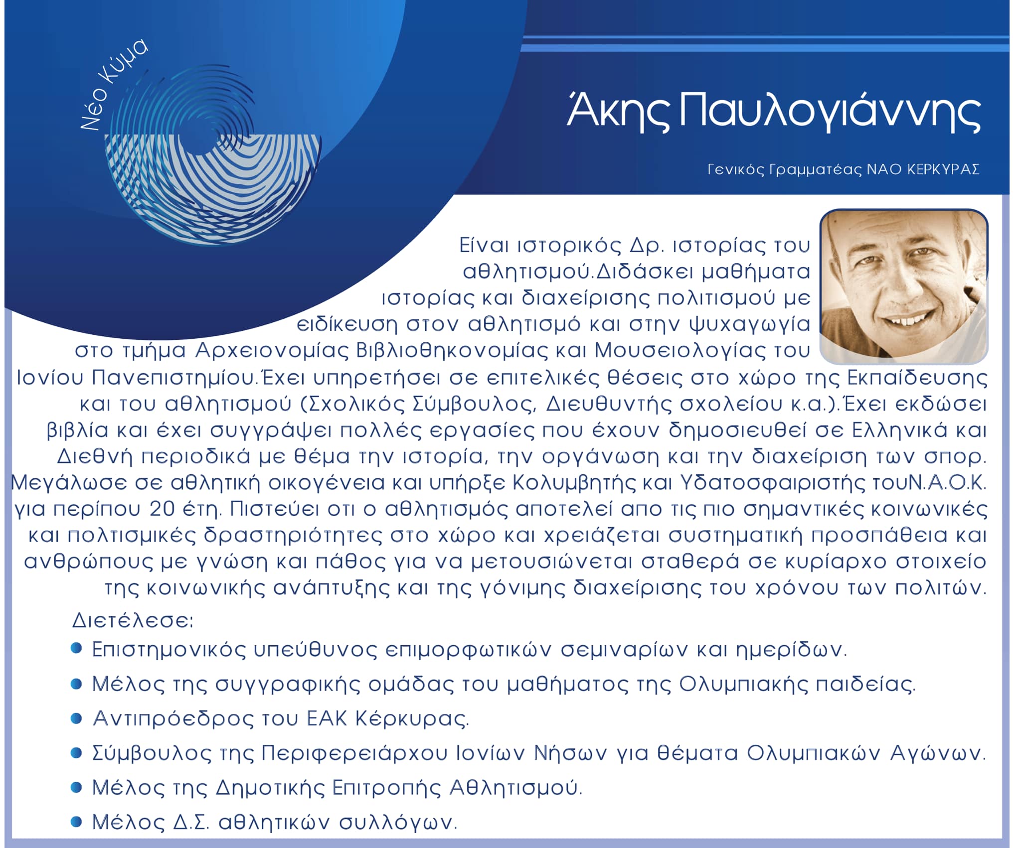 Ο Κερκυραίος Ολυμπιονίκης που κατεβαίνει ως υποψήφιος πρόεδρος στην Κολυμβητική Ομοσπονδία αναφέρει στη σχετική ανακοίνωση πως “με ιδιαίτερη χαρά ανακοινώνουμε την υποψηφιότητα του Άκη Παυλογιάννη με την παράταξη μας στις προσεχείς εκλογές της ΚΟΕ”.