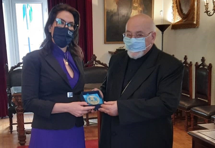 Η Δήμαρχος προσκάλεσε τον πρώην Αρχιεπίσκοπο Καθολικών, προκειμένου να τον ευχαριστήσει για τις υπηρεσίες που προσέφερε κατά την διάρκεια της παραμονής του στο νησί μας, από την θέση του Αρχιεπίσκοπου και ιδιαίτερα για τις προσπάθειές του, για την αποκατάσταση του Κωδωνοστασίου του πρώην Καθολικού Ναού Ευαγγελίστριας “Annunziata”.