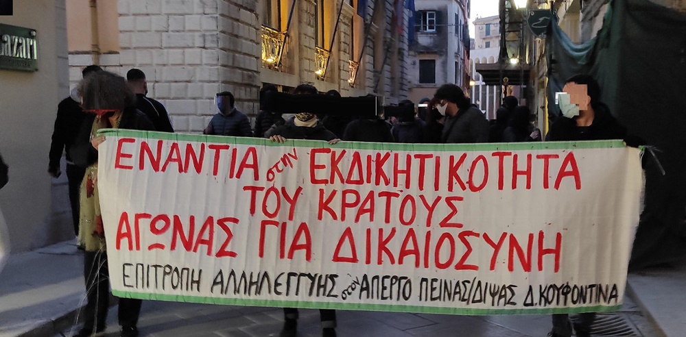 Την Παρασκευή το απόγευμα πραγματοποιήθηκε κινητοποίηση από την Εκκίνηση, υπέρ του δικαιώματος του απεργού πείνας και δίψας Δημήτρη Κουφοντίνα να επιστρέψει στις Φυλακές Κορυδαλλού.