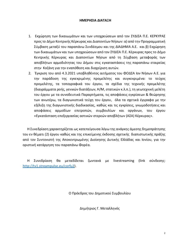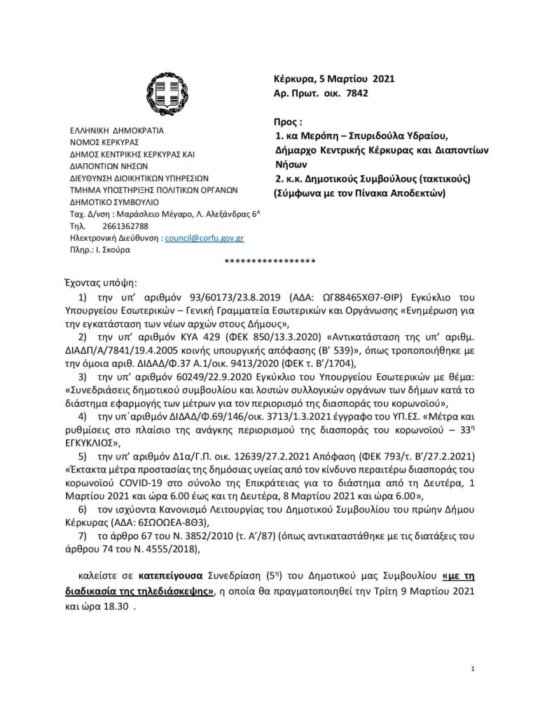 Κατεπείγουσα συνεδρίαση του δημοτικού συμβουλίου του Δήμου Κεντρικής Κέρκυρας θα πραγματοποιηθεί την Τρίτη, με τηλεδιάσκεψη.