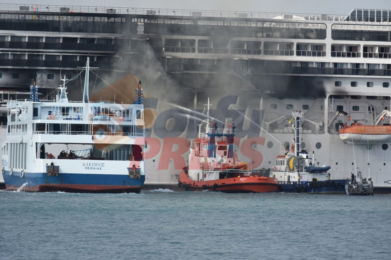 Το ευτύχημα είναι ότι κανένα από τα 51 μέλη του πληρώματος που τον τελευταίο μήνα εκτελούν εργασίες μέσα στο πλοίο, δεν κινδύνευσε ενώ η άμεση επέμβαση της Πυροσβεστικής και του Λιμενικού, με τη συνδρομή σκαφών και εθελοντών, αποσόβησε τα χειρότερα αφού περιόρισε μέσα σε μιάμιση περίπου ώρα τις φλόγες.
