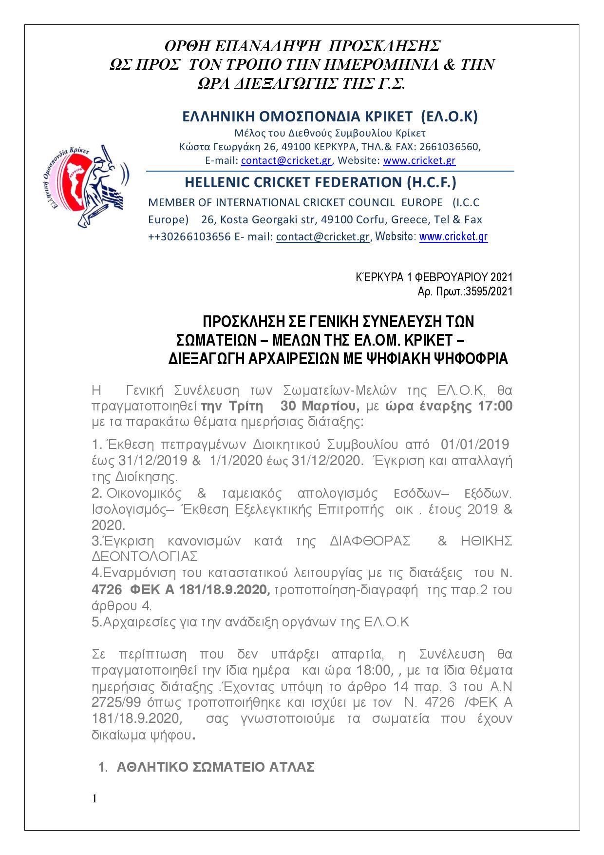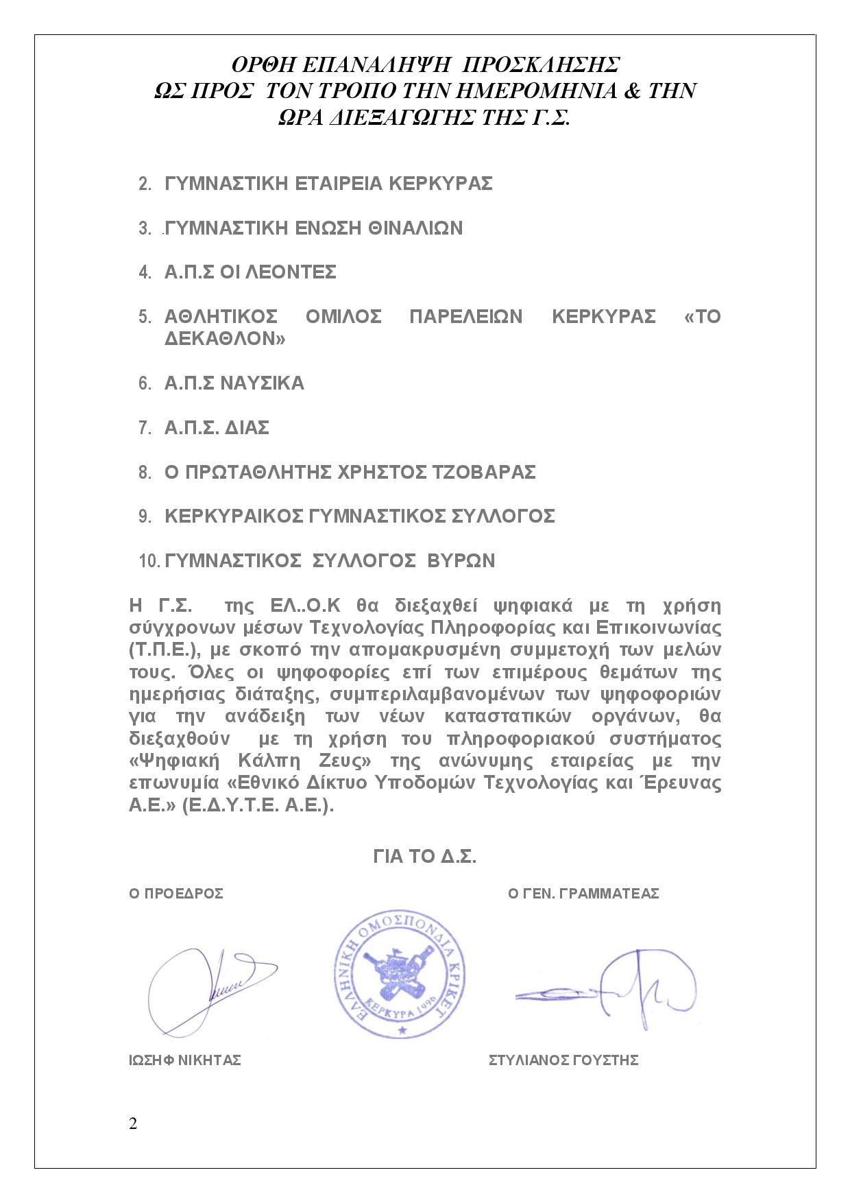 Η Γ.Σ. θα διεξαχθεί ψηφιακά με τη χρήση σύγχρονων μέσων Τεχνολογίας Πληροφορίας και Επικοινωνίας (Τ.Π.Ε.), με σκοπό την απομακρυσμένη συμμετοχή των μελών.