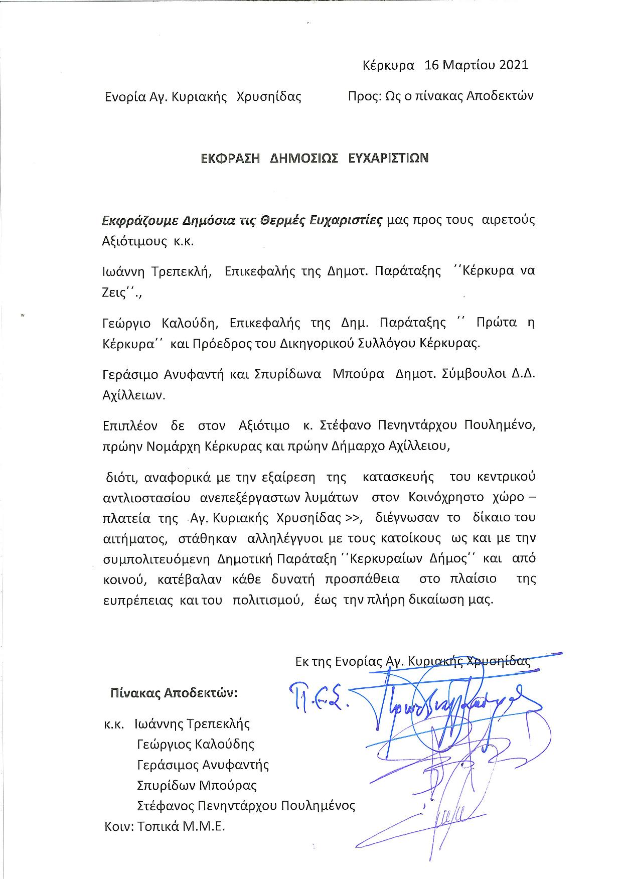 ΠΟΛΙΤΙΚΗΑΥΤΟΔΙΟΙΚΗΣΗΕΙΔΗΣΕΙΣ Η Ενορία Αγ. Κυριακής Χρυσηίδας ευχαριστεί Τρεπεκλή, Καλούδη και Πουλημένο Ευχαριστήρια ανακοίνωση εξέδωσε η Ενορία Αγ. Κυριακής Χρυσηίδας. Last updated: 17/03/2021 09:08 CorfuPress.com Published: 17/03/2021 Share SHARE Ευχαριστήρια ανακοίνωση εξέδωσε η Ενορία Αγ. Κυριακής Χρυσηίδας. Η Ενορία Αγ. Κυριακής Χρυσηίδας ευχαριστεί Τρεπεκλή, Καλούδη και Πουλημένο Share This Article Facebook Whatsapp Whatsapp Email Copy Link Print Previous Article Ευχαριστήριο σε Υδραίου από τους κατοίκους της Χρυσηίδας Next Article Σύλλογος Γονέων ΑμεΑ: Πρόσκληση ενδιαφέροντος για την πρόσληψη κοινωνικού λειτουργού Δεν υπάρχουν Σχόλια Δεν υπάρχουν Σχόλια Αφήστε μια απάντηση Ακύρωση απάντησηςΗ ηλ. διεύθυνση σας δεν δημοσιεύεται. Τα υποχρεωτικά πεδία σημειώνονται με *Σχόλιο * Όνομα * Email * Ιστότοπος Αποθήκευσε το όνομά μου, email, και τον ιστότοπο μου σε αυτόν τον πλοηγό για την επόμενη φορά που θα σχολιάσω. ΑναζήτησηΑναζήτησηRecent PostsΌλα τα μάτια στον Θοδωρή, τον καπετάνιο μας! Τη Δευτέρα 22 Σεπτεμβρίου γιορτάζει… Σαν Σήμερα 22/9: Τα σημαντικότερα γεγονότα… Η πρόγνωση του καιρού Έφηβοι Ιονίου: Με περίπατο, συνεχίζουν στο Rising Stars! Recent CommentsΧωρίς σχόλια για εμφάνιση.