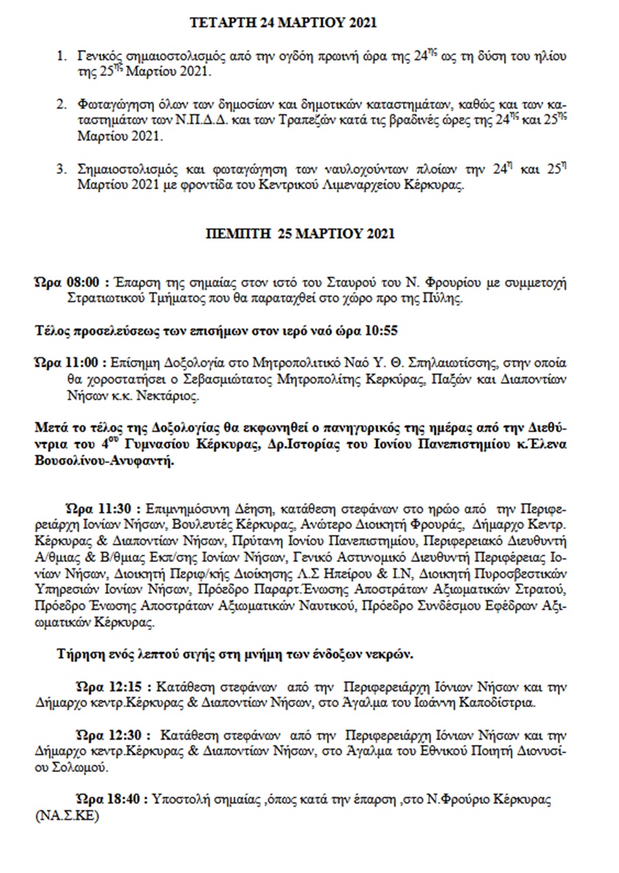 Λόγω των έκτακτων μέτρων που έχουν ληφθεί για την αντιμετώπιση του κορονοϊού οι φετινές εκδηλώσεις θα πραγματοποιηθούν σύμφωνα με τις ισχύουσες υγειονομικές διατάξεις με περιορισμένο αριθμό ατόμων για λόγους δημόσιας υγείας και υπό την αυστηρή τήρηση των υγειονομικών διατάξεων.