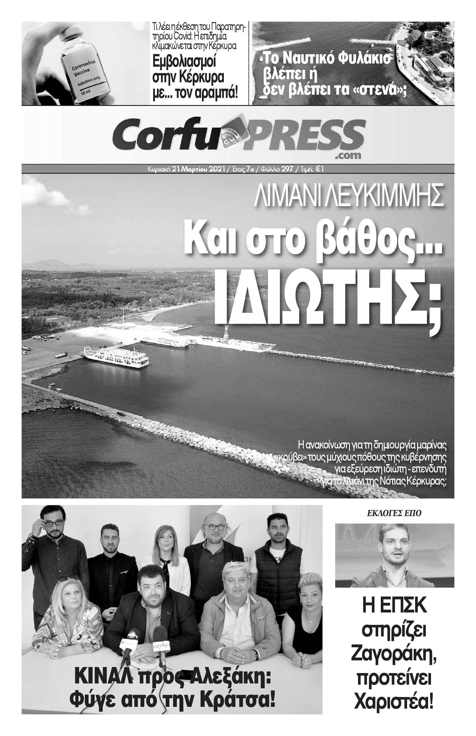 Mην χάσετε την κυριακάτικη εφημερίδα CorfuPress, που περιλαμβάνει πολλά και ενδιαφέροντα θέματα.