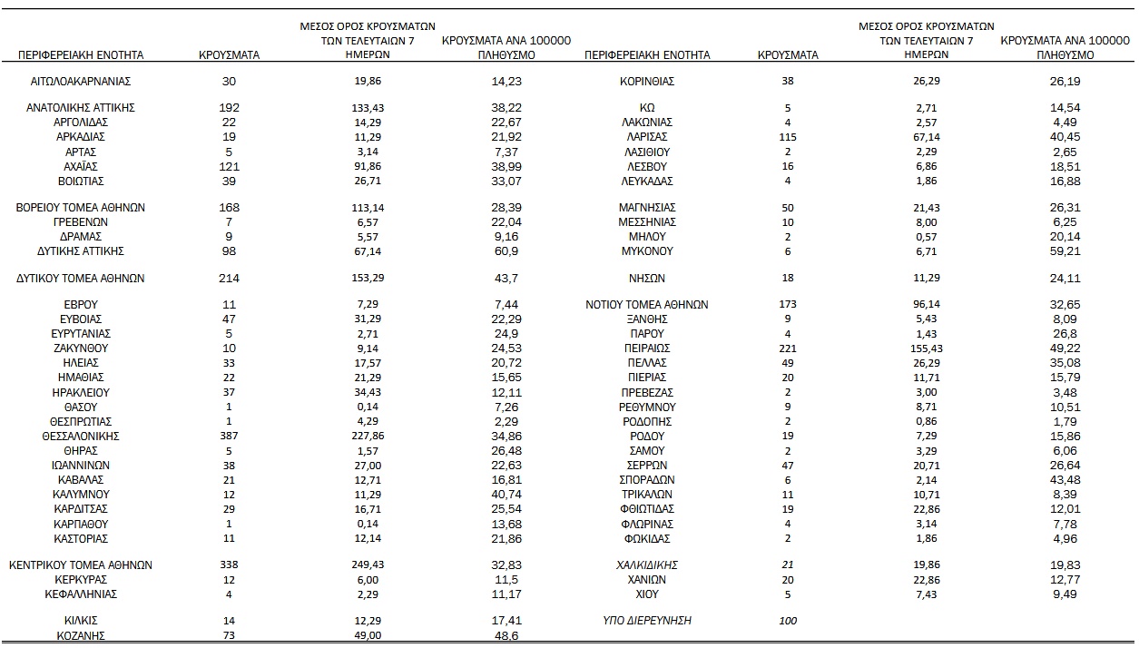 Αναλυτικά, η διασπορά των κρουσμάτων ανά περιφερειακή ενότητα: