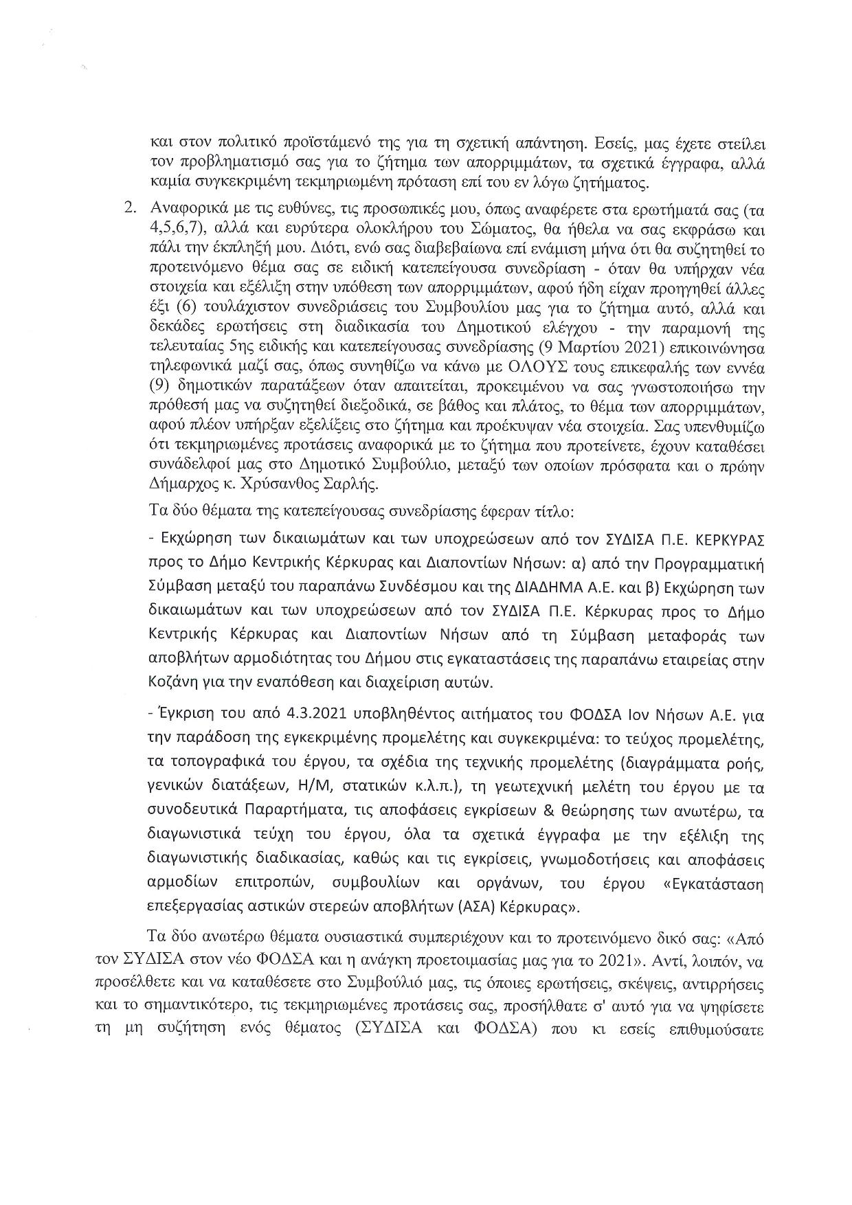 Ο Πρόεδρος του Δημοτικού Συμβουλίου Δ. Μεταλληνός απαντά στα 11 ερωτήματα που του είχε θέσει ο Σπύρος Νεράντζης.