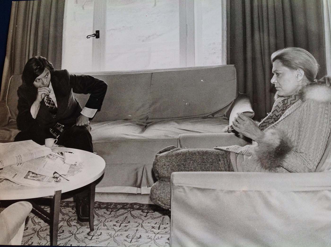 Ρετιρέ στην Αναγνωστόπουλου..Πρωτες μερες μεταπολίτευσης.Μ εχει καλέσει να κουβεντιάσουμε μια ιδεα που εχει για τηλεόραση. Πριν οταν ηταν αυτοεξορίστη ειχε διαβάσει ενα κομμάτι μου στον Ταχυδρομο που είχα μπαρκάρει με γκαζιδικο.Αυτο ηταν η αφορμή να ξεκινήσουμε μια σειρα εκπομπων κοινωνικού ενδιαφέροντος.Θα τη παρουσίαζε η ίδια κι εγω θα ήμουν ο δημοσιογράφος που θα τη συνόδευε..Αρνήθηκα γιατι εκει στον ΔΟΛ ουτε που περνούσε απο νου μας να βγούμε στην τηλεόραση εκείνα τα χρονια..Πολυ περισσοτερο στην Κυβερνηση Καραμανλή.Μετα απο μένα κάλεσε την συναδελφο Φανή Πετραληα η οποια επισης αρνήθηκε.Τελευταιο φώναξε τον Λευτερη τον Παπαδόπουλο..Με τον Λευτερη γυρισε μια εκπομπη με θεμα τις Γειτονιές της Αθηνας που σκηνοθέτησε ο Τζουλη..Δεν έμαθα τι απογίνε μ αυτη την εκπομπη.