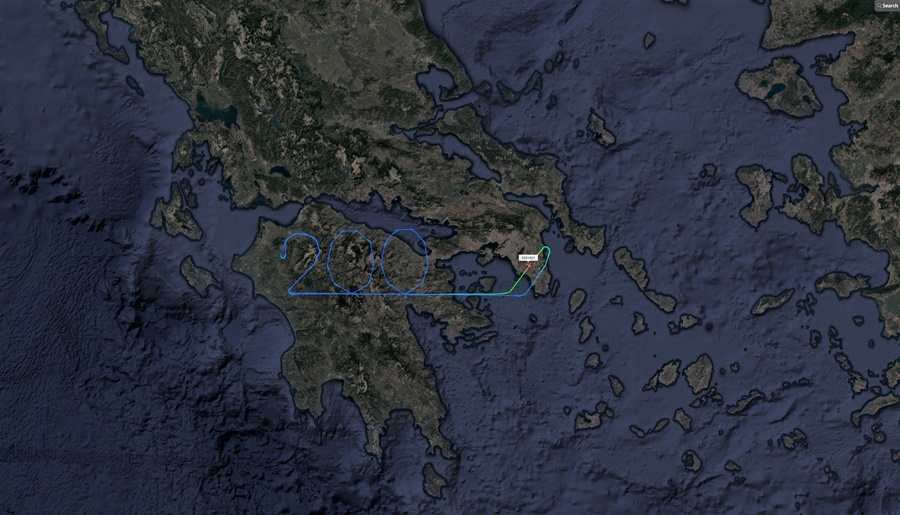 Στην πορεία του το αεροσκάφος ξεκίνησε να σχηματίζει το 200, πετώντας πάνω από την Αρχαία Ολυμπία, τα Καλάβρυτα, την Κόρινθο, το Άργος και τα ιστορικά Δερβενάκια.