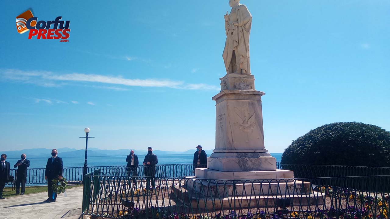 Με επίκεντρο τη συμβολή των Επτανήσων και της Κέρκυρας στην εθνική μας παλιγγενεσία και με το θλιβερό θέαμα των άδειων δρόμων και της απαγόρευσης παρουσίας κόσμου στις περιορισμένες εκδηλώσεις, εορτάστηκε σήμερα και στην Κέρκυρα η επέτειος της 25ης Μαρτίου με δοξολογία, κατάθεση στεφάνων και μικρές εκδηλώσεις στα μνημεία των Ι. Καποδίστρια και Δ. Σολωμού.