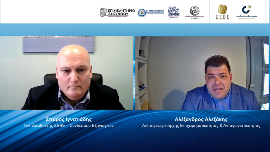 Πραγματοποιήθηκε την Τετάρτη διαδικτυακή ενημερωτική εκδήλωση από τον ΣΕΒΕ – Σύνδεσµο Εξαγωγέων, µε την υποστήριξη της Περιφέρειας Ιονίων Νήσων και των Επιµελητηρίων Ζακύνθου, Κέρκυρας, Κεφαλληνίας & Ιθάκης και Λευκάδας σχετικά µε την παρουσίαση δύο νέων επιδοτούμενων προγραµµάτων επαγγελµατικής εξειδίκευσης, τα οποία υλοποιούνται στο πλαίσιο του Ε.Π. «Ανταγωνιστικότητα, Επιχειρηµατικότητα και Καινοτοµία 2014-2020».