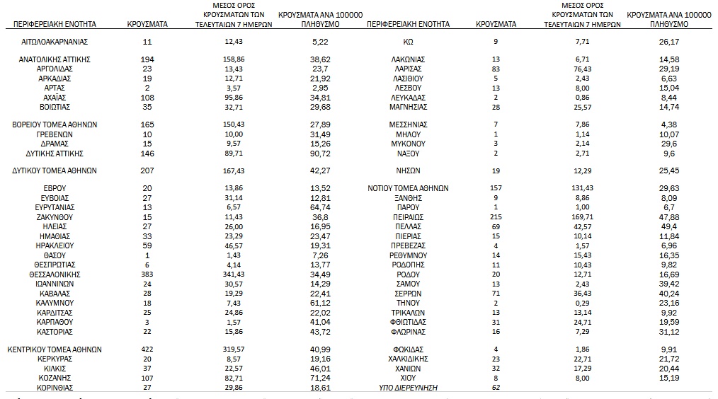 Αναλυτικά, η διασπορά του ιού ανά περιφερειακή ενότητα: