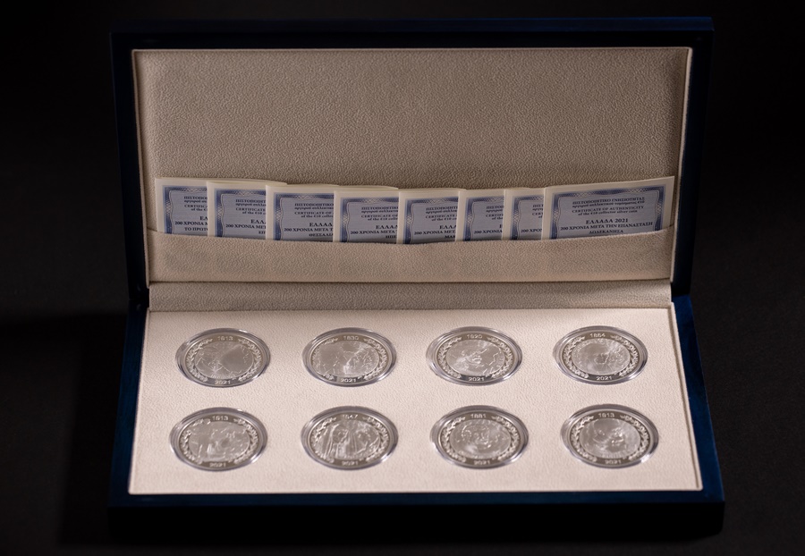 Κεντρικό σημείο αναφοράς της επετείου των 200 χρόνων μετά την Επανάσταση και ξεχωριστό ενθύμιο ιδιαίτερης αισθητικής και συναισθηματικής αξίας αποτελεί η συλλογή των 14 συλλεκτικών νομισμάτων του Νομισματικού Προγράμματος της Επιτροπής «Ελλάδα 2021», που υλοποιήθηκε με απόφαση του Υπουργείου Οικονομικών και με την ευγενική χορηγία της Τράπεζας της Ελλάδας, μετά από εισήγηση της Επιτροπής «Ελλάδα 2021».