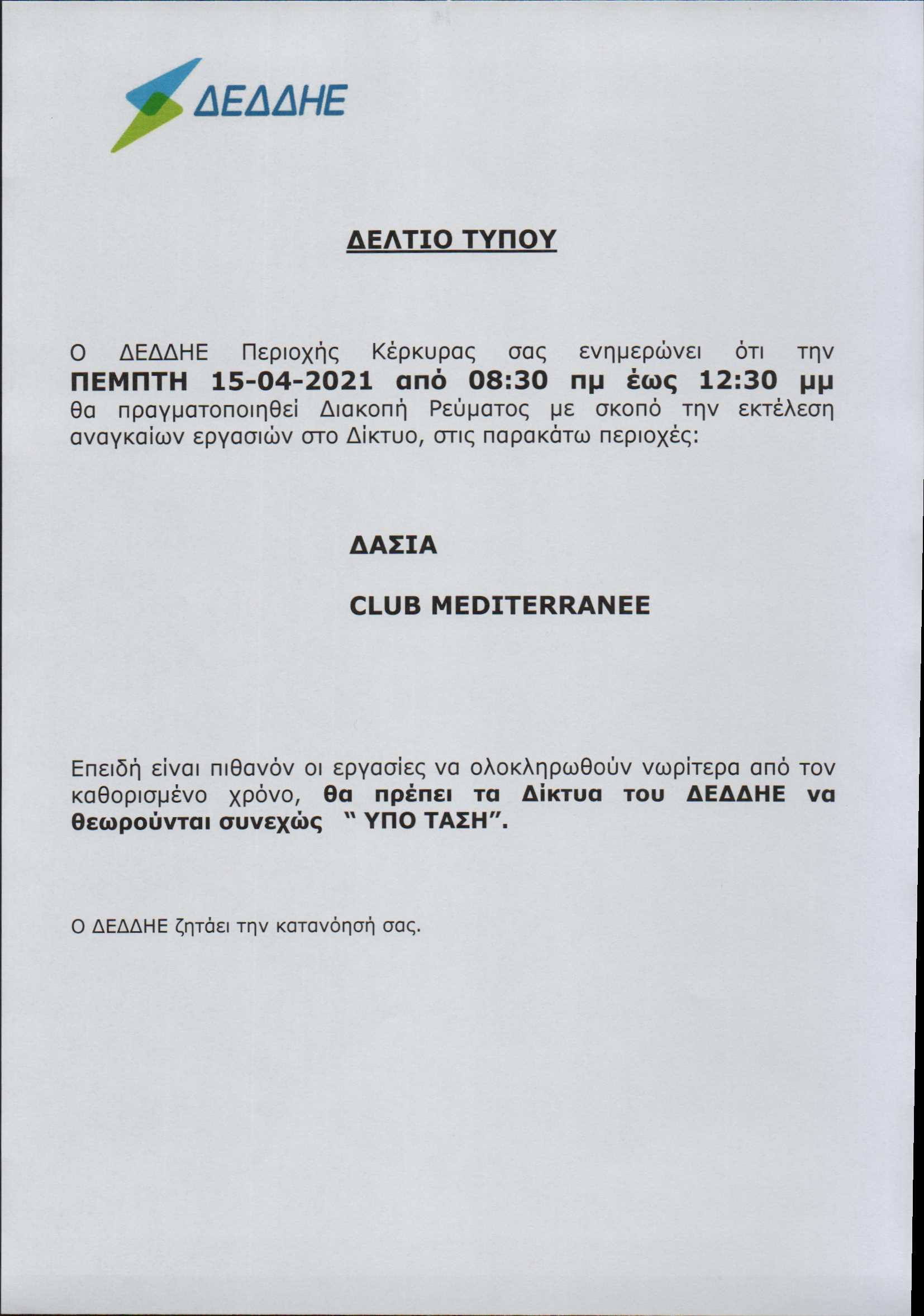 ΚΟΙΝΩΝΙΑΕΛΕΥΘΕΡΟΕΙΔΗΣΕΙΣ Διακοπή ρεύματος στη Δασιά Διακοπή ρεύματος θα πραγματοποιηθεί την Πέμπτη στην περιοχή της Δασιάς. Last updated: 13/04/2021 10:04 CorfuPress.com Published: 13/04/2021 Share SHARE Διακοπή ρεύματος θα πραγματοποιηθεί την Πέμπτη στην περιοχή της Δασιάς. Διακοπή ρεύματος τη Δευτέρα-Δείτε που Που θα γίνει διακοπή ρεύματος την Τετάρτη Που θα γίνει διακοπή ρεύματος την Τετάρτη Που θα γίνουν προγραμματισμένες διακοπές ρεύματος το διάστημα 23-25 Αυγούστου Έρχεται διακοπή ρεύματος στη Βόρεια Κέρκυρα Share This Article Facebook Whatsapp Whatsapp Email Copy Link Print Previous Article Συλλυπητήρια AOCTA για το θάνατο του πρίγκιπα Φιλίππου Next Article Συνολική Πρόταση για την Σχολική Στέγη της Κέρκυρας Δεν υπάρχουν Σχόλια Δεν υπάρχουν Σχόλια Αφήστε μια απάντηση Ακύρωση απάντησηςΗ ηλ. διεύθυνση σας δεν δημοσιεύεται. Τα υποχρεωτικά πεδία σημειώνονται με *Σχόλιο * Όνομα * Email * Ιστότοπος Αποθήκευσε το όνομά μου, email, και τον ιστότοπο μου σε αυτόν τον πλοηγό για την επόμενη φορά που θα σχολιάσω. ΑναζήτησηΑναζήτησηRecent PostsΌλα τα μάτια στον Θοδωρή, τον καπετάνιο μας! Τη Δευτέρα 22 Σεπτεμβρίου γιορτάζει… Σαν Σήμερα 22/9: Τα σημαντικότερα γεγονότα… Η πρόγνωση του καιρού Έφηβοι Ιονίου: Με περίπατο, συνεχίζουν στο Rising Stars! Recent CommentsΧωρίς σχόλια για εμφάνιση.