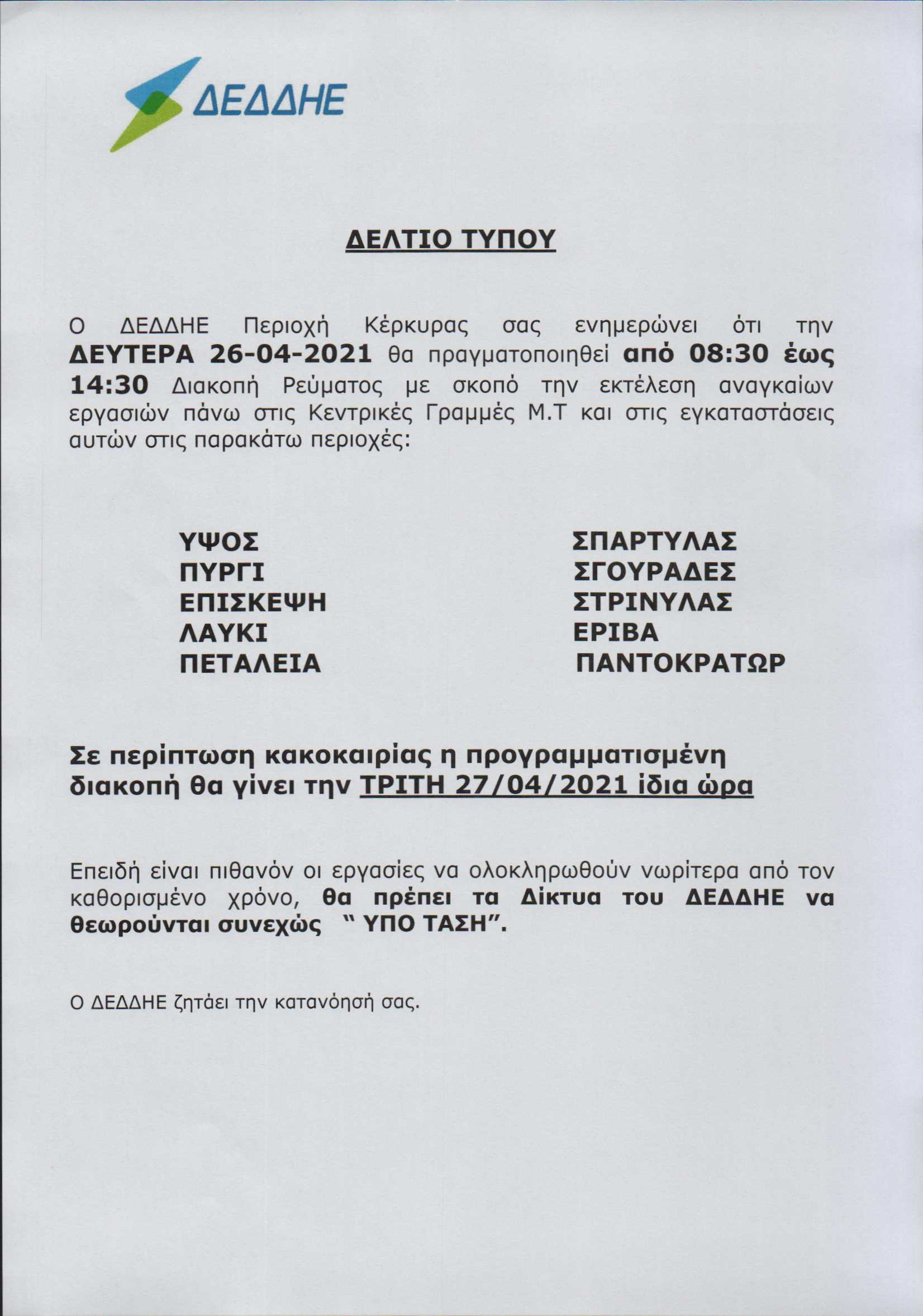 ΚΟΙΝΩΝΙΑΕΛΕΥΘΕΡΟΕΙΔΗΣΕΙΣ Διακοπές ρεύματος σε πολλές περιοχές τη Δευτέρα Οι διακοπές θα πραγματοποιηθούν εξαιτίας εργασιών του ΔΕΔΔΗΕ. Last updated: 23/04/2021 07:41 CorfuPress.com Published: 23/04/2021 Share SHARE Οι διακοπές θα πραγματοποιηθούν εξαιτίας εργασιών του ΔΕΔΔΗΕ. Διακοπή ρεύματος τη Δευτέρα-Δείτε που Που θα γίνει διακοπή ρεύματος την Τετάρτη Που θα γίνει διακοπή ρεύματος την Τετάρτη Που θα γίνουν προγραμματισμένες διακοπές ρεύματος το διάστημα 23-25 Αυγούστου Έρχεται διακοπή ρεύματος στη Βόρεια Κέρκυρα Share This Article Facebook Whatsapp Whatsapp Email Copy Link Print Previous Article Την Παρασκευή 23/4 γιορτάζει… Next Article ΕΛΜΕ: Ψηφίσματα για ΚΕΘΕΑ, ΙΕΚ Τουρισμού και απόφοιτους ΤΜΣ Δεν υπάρχουν Σχόλια Δεν υπάρχουν Σχόλια Αφήστε μια απάντηση Ακύρωση απάντησηςΗ ηλ. διεύθυνση σας δεν δημοσιεύεται. Τα υποχρεωτικά πεδία σημειώνονται με *Σχόλιο * Όνομα * Email * Ιστότοπος Αποθήκευσε το όνομά μου, email, και τον ιστότοπο μου σε αυτόν τον πλοηγό για την επόμενη φορά που θα σχολιάσω. ΑναζήτησηΑναζήτησηRecent PostsΌλα τα μάτια στον Θοδωρή, τον καπετάνιο μας! Τη Δευτέρα 22 Σεπτεμβρίου γιορτάζει… Σαν Σήμερα 22/9: Τα σημαντικότερα γεγονότα… Η πρόγνωση του καιρού Έφηβοι Ιονίου: Με περίπατο, συνεχίζουν στο Rising Stars! Recent CommentsΧωρίς σχόλια για εμφάνιση.