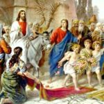Ο Χριστός εισέρχεται στα Ιεροσόλυμα «επί πώλον όνου». Πορεύεται και οι Ισραηλίτες τον υποδέχονται με τιμές ως Βασιλιά. Εκείνος δεν δίνει ιδιαίτερη σημασία στις τιμές, δεν περιορίζεται στο πανηγύρι, στην πρόσκαιρη δόξα, αλλά προχωρεί στο σταυρό και την Ανάσταση.