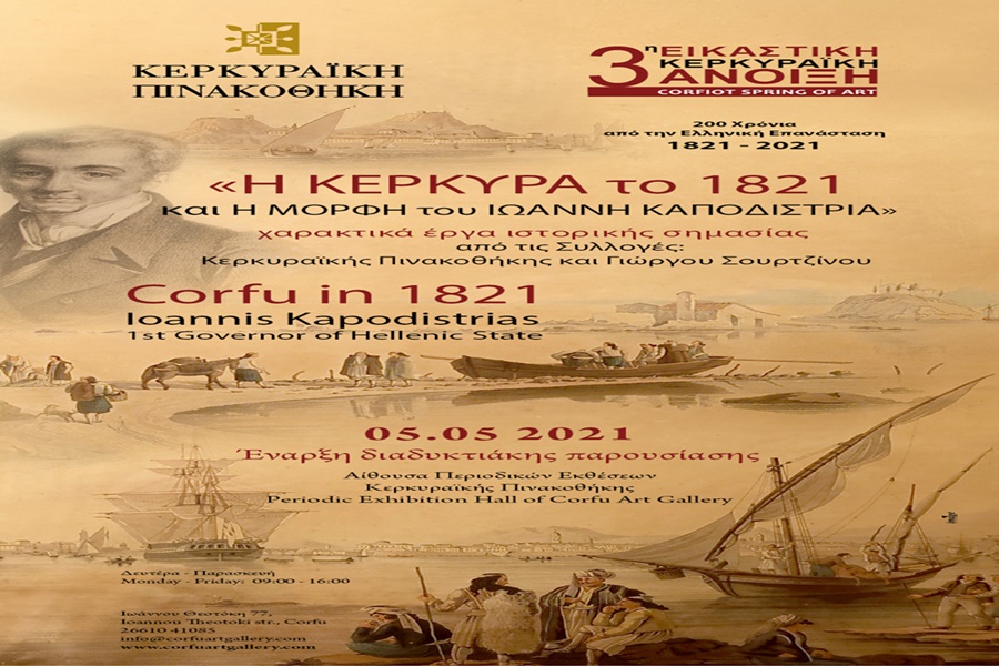 Η Κερκυραϊκή Πινακοθήκη, στo πλαίσιο της «3ης Εικαστικής Κερκυραϊκής Άνοιξης» παρουσιάζει την έκθεση με τίτλο: «Η Κέρκυρα το 1821 και η Μορφή του Ιωάννη Καποδίστρια», αφιερωμένη στον εορτασμό των 200 χρόνων από την έναρξη της Ελληνικής Επανάστασης.