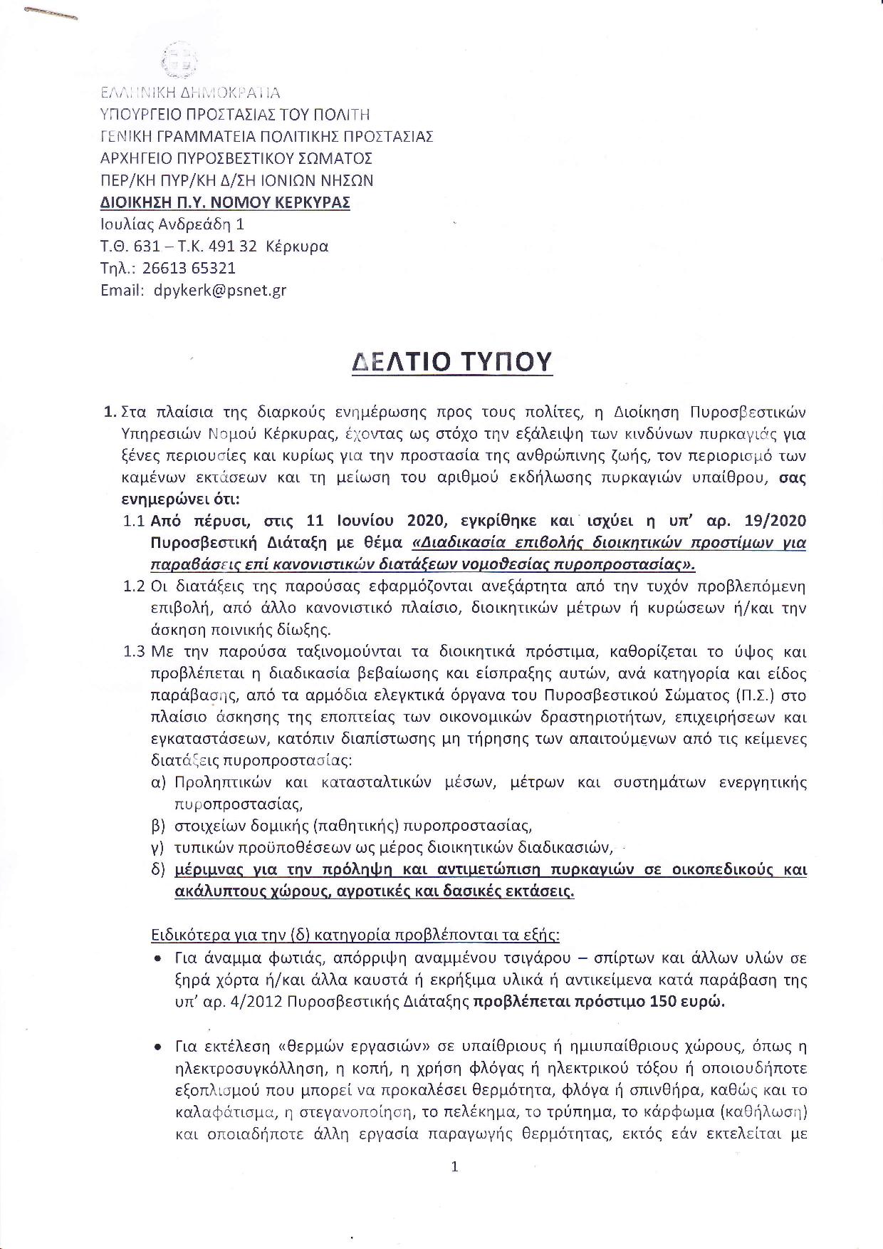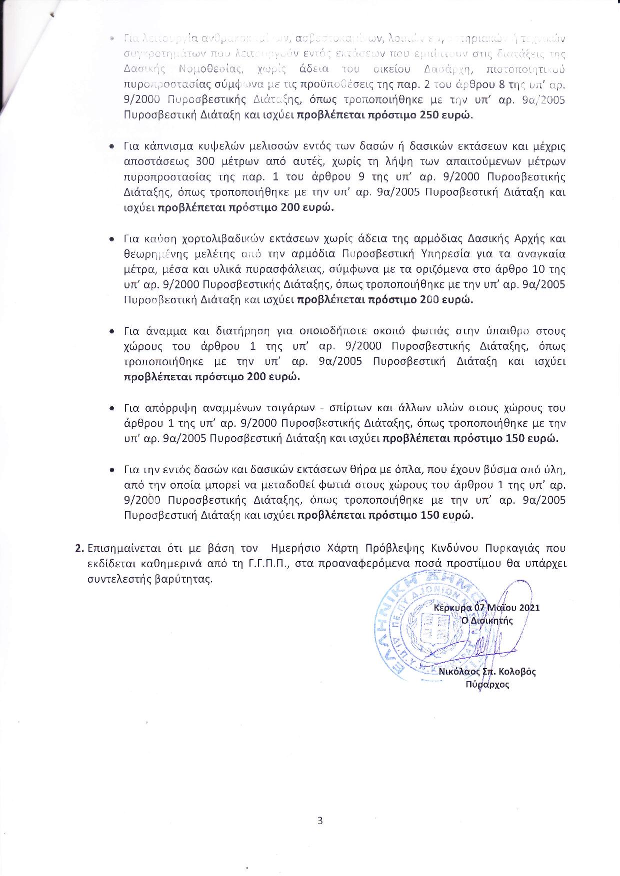 Ενημερωτικό της Πυροσβεστικής Υπηρεσίας σχετικά με τα διοικητικά πρόστιμα για παραβάσεις της νομοθεσίας περί πυροπροστασίας