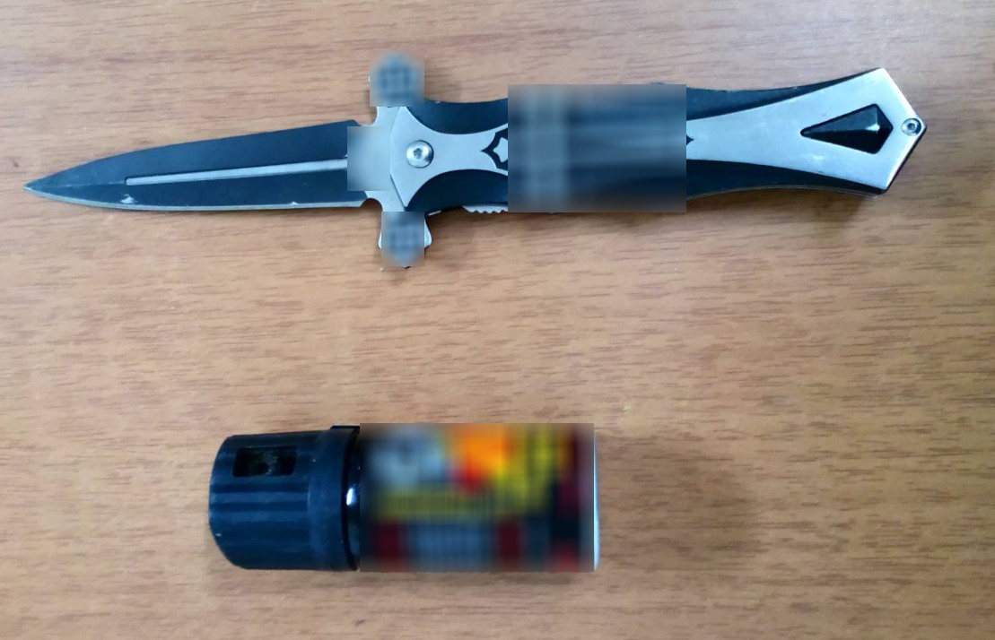 Ειδικότερα, στην κατοχή της, κατά τη διάρκεια αστυνομικού ελέγχου, βρέθηκαν και κατασχέθηκαν μεταλλικό πτυσσόμενο μαχαίρι και σπρέι πιπεριού.