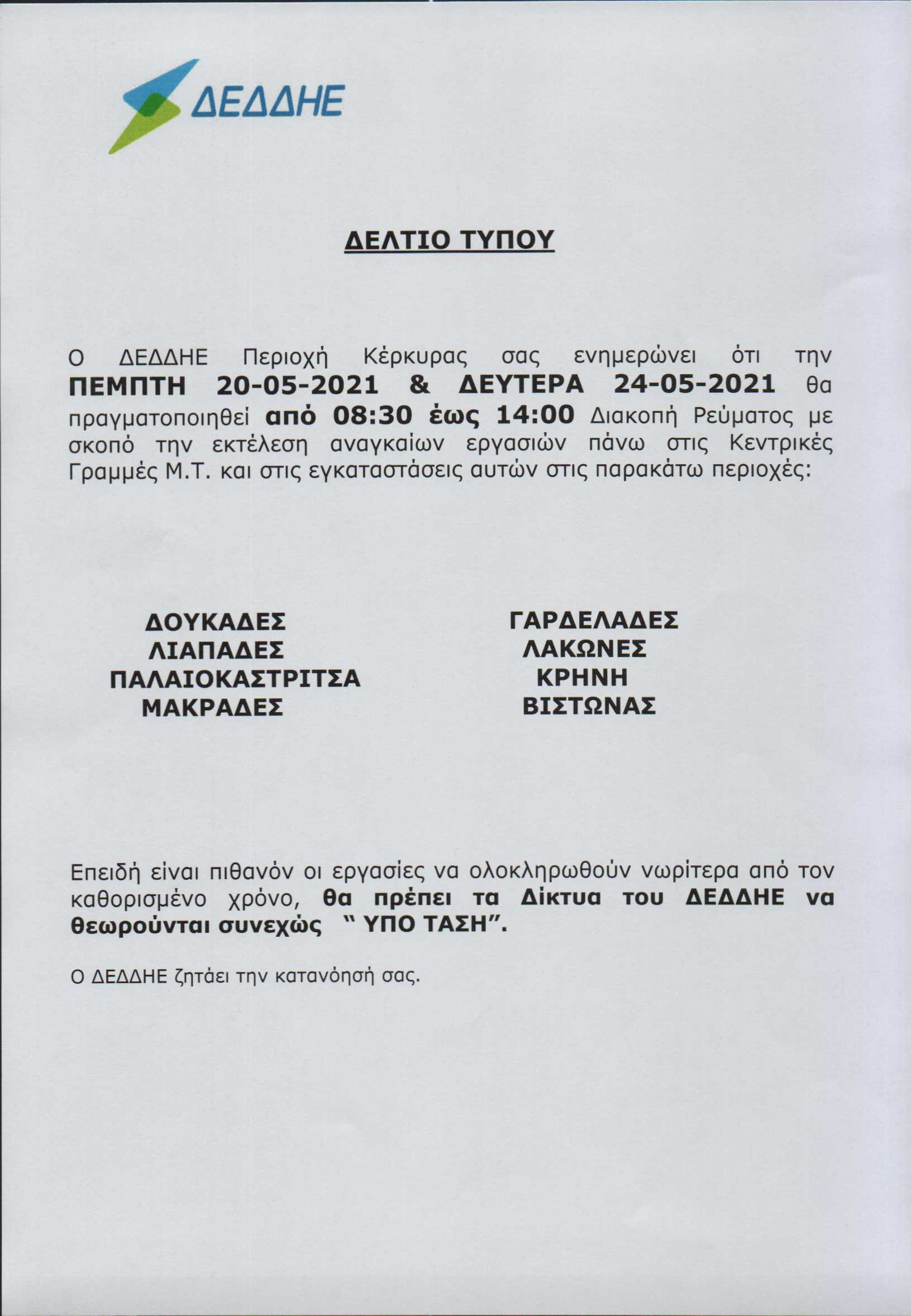 ΚΟΙΝΩΝΙΑΕΛΕΥΘΕΡΟΕΙΔΗΣΕΙΣ Διακοπές ρεύματος Πέμπτη και Δευτέρα Νέες διακοπές ρεύματος ανακοίνωσε για την Πέμπτη και την προσεχή Δευτέρα ο ΔΕΔΔΗΕ. Last updated: 05/10/2025 06:02 CorfuPress.com Published: 17/05/2021 Share SHARE Νέες διακοπές ρεύματος ανακοίνωσε για την Πέμπτη και την προσεχή Δευτέρα ο ΔΕΔΔΗΕ. Διακοπή ρεύματος τη Δευτέρα-Δείτε που Που θα γίνει διακοπή ρεύματος την Τετάρτη Που θα γίνει διακοπή ρεύματος την Τετάρτη Που θα γίνουν προγραμματισμένες διακοπές ρεύματος το διάστημα 23-25 Αυγούστου Έρχεται διακοπή ρεύματος στη Βόρεια Κέρκυρα Share This Article Facebook Whatsapp Whatsapp Email Copy Link Print Previous Article Αναγνωριστικός ημιτελικός στο Μπάρνσλεϊ Next Article Τριχίλιαρο πρόστιμο σε κατάστημα γιατί είχε πελάτες σε εσωτερικό χώρο Δεν υπάρχουν Σχόλια Δεν υπάρχουν Σχόλια Αφήστε μια απάντηση Ακύρωση απάντησηςΗ ηλ. διεύθυνση σας δεν δημοσιεύεται. Τα υποχρεωτικά πεδία σημειώνονται με *Σχόλιο * Όνομα * Email * Ιστότοπος Αποθήκευσε το όνομά μου, email, και τον ιστότοπο μου σε αυτόν τον πλοηγό για την επόμενη φορά που θα σχολιάσω. ΑναζήτησηΑναζήτησηRecent PostsΌλα τα μάτια στον Θοδωρή, τον καπετάνιο μας! Τη Δευτέρα 22 Σεπτεμβρίου γιορτάζει… Σαν Σήμερα 22/9: Τα σημαντικότερα γεγονότα… Η πρόγνωση του καιρού Έφηβοι Ιονίου: Με περίπατο, συνεχίζουν στο Rising Stars! Recent CommentsΧωρίς σχόλια για εμφάνιση.