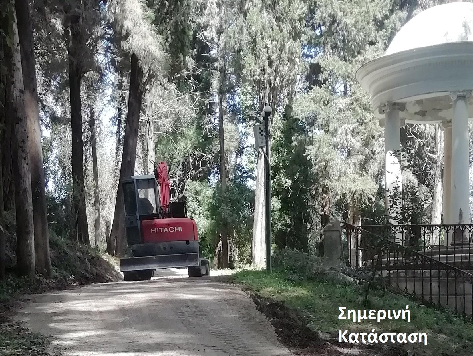 Αναφέρομαι στις εκτεταμένες καταστροφές των βοτσαλωτών διαδρόμων του δασυλλίου και όχι μόνο. Εξ άλλου η αρχική διαπίστωση των καταστροφικών αυτών τεχνικών παρεμβάσεων έγινε από την κ. Ρηγάκου, προϊσταμένη της Εφορείας Αρχαιοτήτων Κέρκυρας.