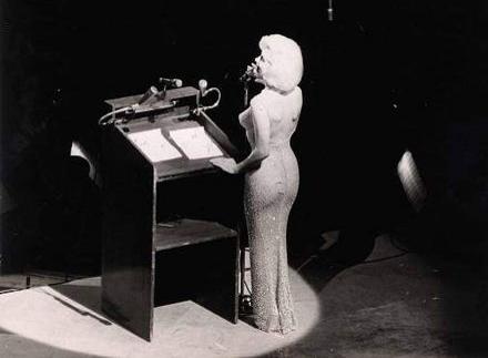 Η Μέριλιν Μονρόε τραγουδάει αισθησιακά το «Happy Birthday» προς τιμήν του αμερικανού προέδρου, Τζον Κένεντι, στο πάρτι γενέθλιων του.