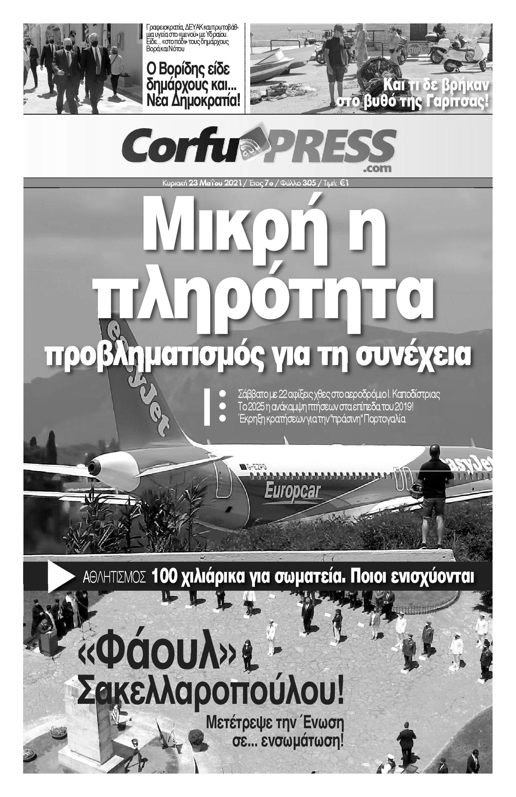 Mην χάσετε την κυριακάτικη εφημερίδα CorfuPress, που περιλαμβάνει πολλά και ενδιαφέροντα θέματα.