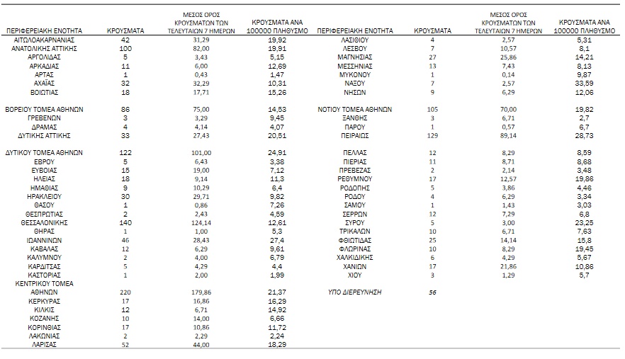 Αναλυτικά, η διασπορά των κρουσμάτων ανά περιφερειακή ενότητα: