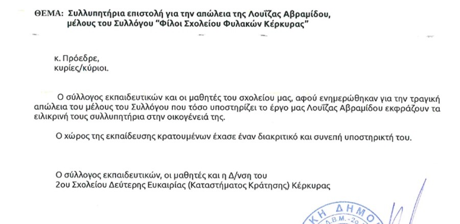 ΚΟΙΝΩΝΙΑΕΛΕΥΘΕΡΟΕΙΔΗΣΕΙΣ Συλλυπητήρια για το χαμό της Λουίζας Αβραμίδου από το Σχολείο Δεύτερης Ευκαιρίας Συλλυπητήρια του ΣΔΕ για το θάνατο της εκπαιδευτικού Λουίζας Αβραμίδου. Last updated: 07/06/2021 14:54 CorfuPress.com Published: 07/06/2021 Share SHARE Συλλυπητήρια του ΣΔΕ για το θάνατο της εκπαιδευτικού Λουίζας Αβραμίδου. Ξεκινούν οι εγγραφές στο Σχολείο Δεύτερης Ευκαιρίας Κέρκυρας Λίγες μείνανε… Το Ιόνιο Πανεπιστήμιο στο πλευρό των κρατούμενων φοιτητών του και του ΣΔΕ Κλαδάς: Το Σχολείο Δεύτερης Ευκαιρίας αναδεικνύει την ουσία της εκπαίδευσης «Λίγες Μείνανε…»: Εκδήλωση του Σχολείου Δεύτερης Ευκαιρίας των Φυλακών Share This Article Facebook Whatsapp Whatsapp Email Copy Link Print Previous Article Κορονοϊός: 808 νέα κρούσματα στην Ελλάδα – 24 νεκροί και 392 διασωληνωμένοι Next Article Στρατηγικός σχεδιασμός Νότιας Κέρκυρας Δεν υπάρχουν Σχόλια Δεν υπάρχουν Σχόλια Αφήστε μια απάντηση Ακύρωση απάντησηςΗ ηλ. διεύθυνση σας δεν δημοσιεύεται. Τα υποχρεωτικά πεδία σημειώνονται με *Σχόλιο * Όνομα * Email * Ιστότοπος Αποθήκευσε το όνομά μου, email, και τον ιστότοπο μου σε αυτόν τον πλοηγό για την επόμενη φορά που θα σχολιάσω. ΑναζήτησηΑναζήτησηRecent PostsΌλα τα μάτια στον Θοδωρή, τον καπετάνιο μας! Τη Δευτέρα 22 Σεπτεμβρίου γιορτάζει… Σαν Σήμερα 22/9: Τα σημαντικότερα γεγονότα… Η πρόγνωση του καιρού Έφηβοι Ιονίου: Με περίπατο, συνεχίζουν στο Rising Stars! Recent CommentsΧωρίς σχόλια για εμφάνιση.