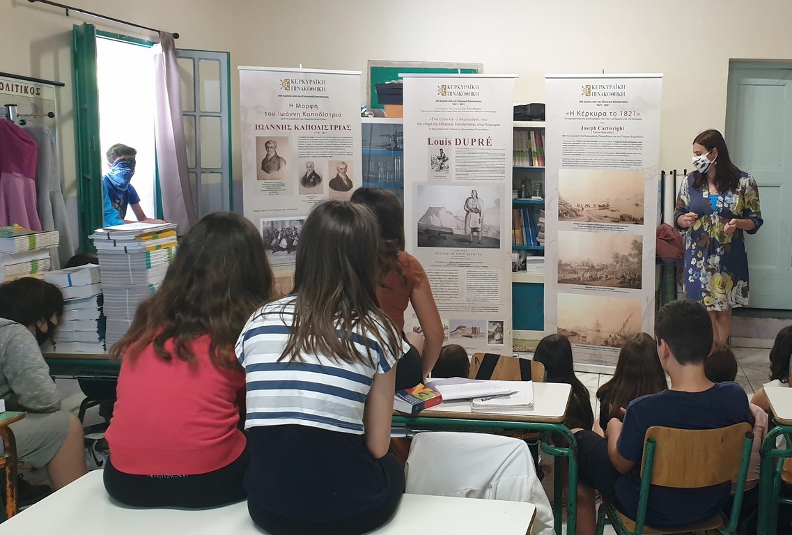 Στα πλαίσια των εκπαιδευτικών δράσεων της Κερκυραϊκής Πινακοθήκης, παρουσιάστηκε σήμερα η Περιοδική Έκθεση «Η Κέρκυρα του 1821 και η μορφή του Ιωάννη Καποδίστρια», σε αίθουσα του Δημοτικού Σχολείου Κοντοκαλίου.