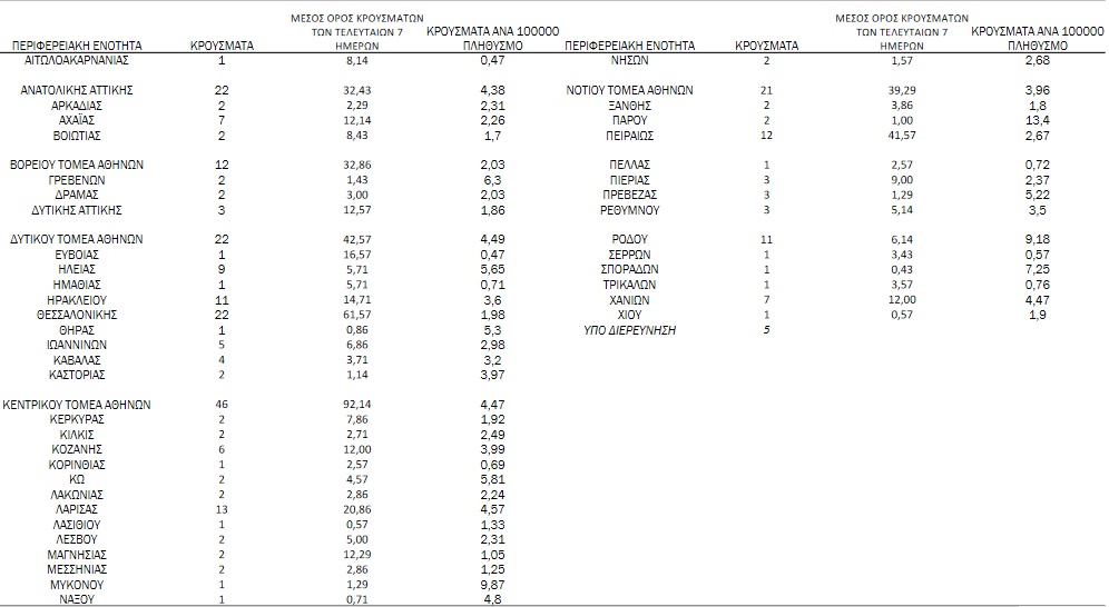 Αναλυτικά, η διασπορά των νέων κρουσμάτων του ιού ανά περιφερειακή ενότητα: