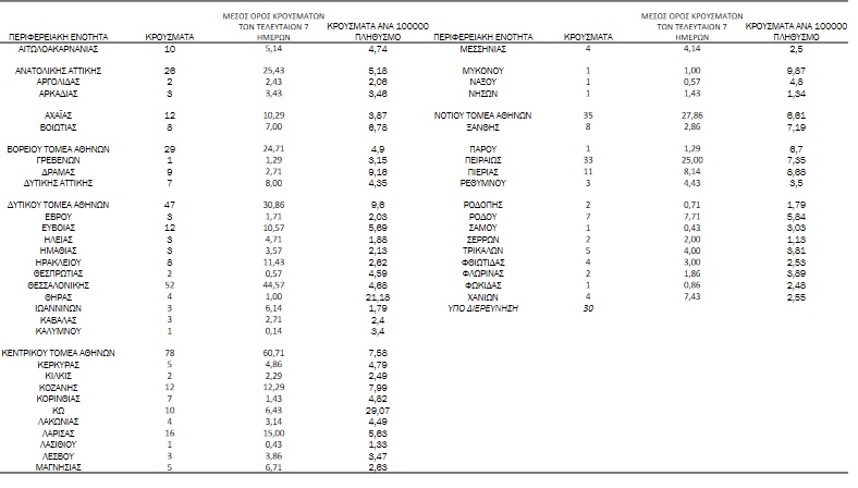 Αναλυτικά, η διασπορά των νέων κρουσμάτων του ιού ανά περιφερειακή ενότητα: