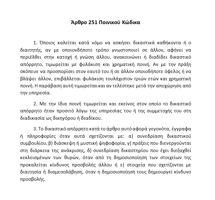 Για το λόγο αυτό παραθέτω και τις διατάξεις του ισχύοντος Ποινικού Κώδικα, η εφαρμογή των οποίων θα ζητηθεί σχετικώς :