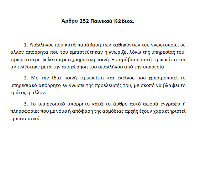 Επιπλέον πρέπει διερευνηθεί αν η δημοσιοποίηση των στοιχείων μέσω του τύπου είναι ποινικά αξιόλογη και πως έλαβαν τα στοιχεία αυτά τα ΜΜΕ, υπό την απόλυτη, φυσικά προϋπόθεση να μη θιγεί το συνταγματικά κατοχυρωμένο δικαίωμα της ελευθεροτυπίας, όπως πρέπει αυτό να ασκείται μέσα στα πλαίσια του θεσμικού μας πλαισίου.