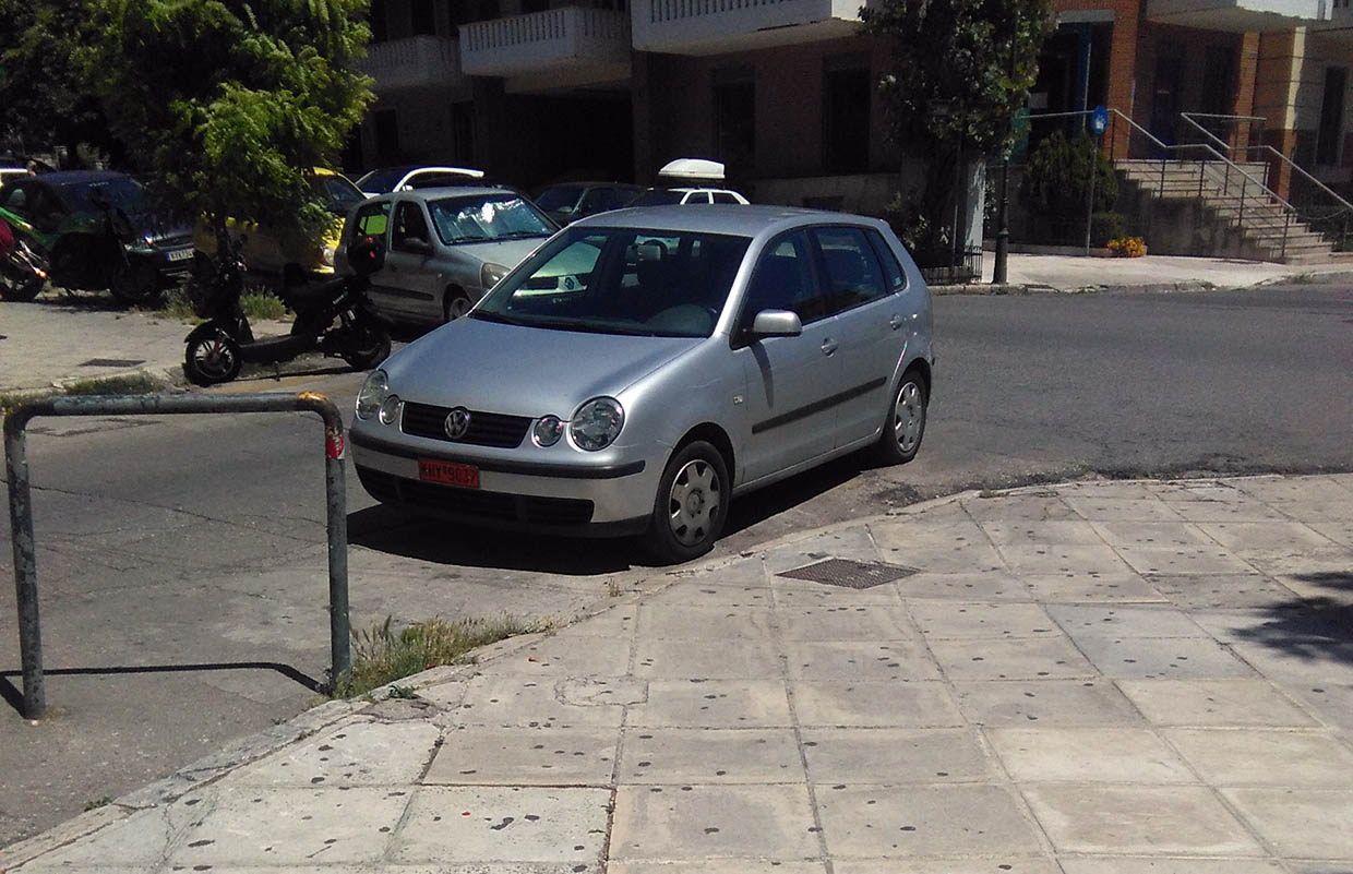 Δευτέρα 14 Ιουνίου, ώρα 14.15. Το αυτοκίνητο με κρατικές πινακίδες (της παρακείμενης Περιφέρειας έμαθα μετά συζητώντας με γείτονα καταστηματάρχη ) σταθμευμένο πάνω στη διάβαση πεζών απέναντι από το 1ο-5ο Γυμνάσιο.
