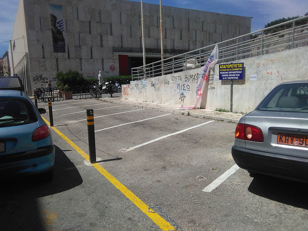 Αλυσίδες για να χωρίζουν τα αυτοκίνητα των αξιωματούχων, από εκείνα του πόπολου. Χωρίς να σκεφτούν ότι στερούν θέσεις, αναγκαίες για τη λειτουργία της πόλης, των επιχειρήσεων, των Κερκυραίων και των επισκεπτών.