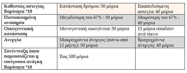Ειδικότερα, η μοριοδότηση των κριτηρίων θα προκύψει ως εξής από τα κάτωθι κριτήρια:
