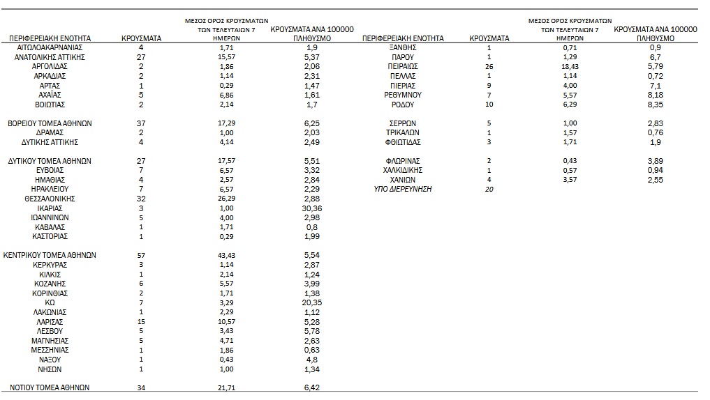 Αναλυτικά, η διασπορά των νέων κρουσμάτων ανά περιφερειακή ενότητα: