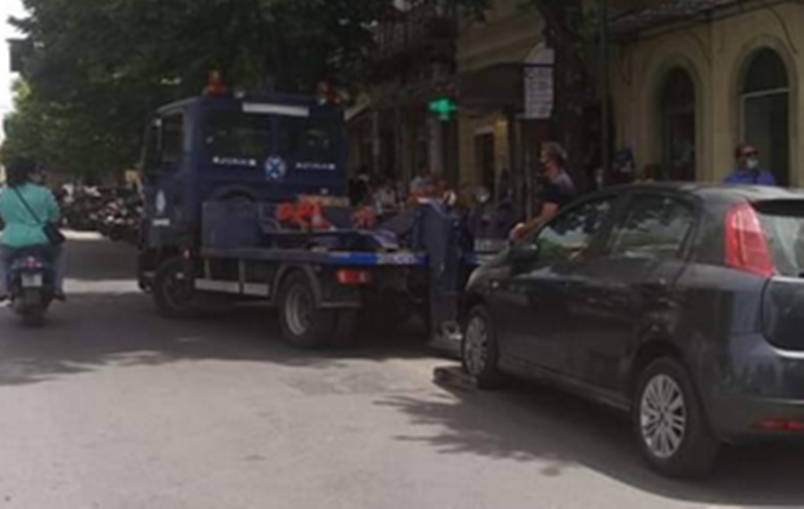 Για… δουλειά βγήκε ξανά ο γερανός που χρησιμοποιεί η τροχαία για να απομακρύνει τα παρανόμως σταθμευμένα οχήματα..