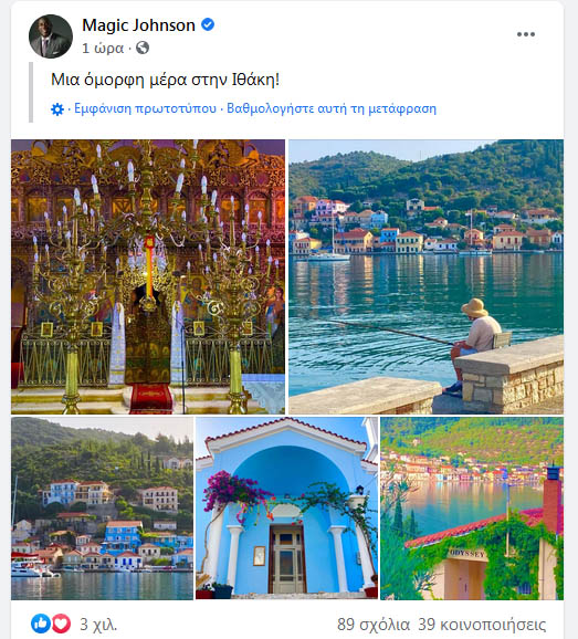 Ο Earvin Magic Johnson μπήκε σε ορθόδοξη εκκλησία και φωτογράφισε ψαρά στο Βαθύ της Ιθάκης, αποθανάτισε σπίτι με το όνομα του Οδυσσέα αλλά και το πιάτο με το ψάρι «μπιάνκο» που απόλαυσε σε γνωστό εστιατόριο στη Γαρίτσα, υπογράφοντας μάλιστα και το βιβλίο επισκεπτών