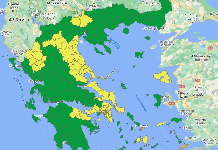 Οι Δήμοι Σκύρου και Σαλαμίνας πέφτουν επίπεδο και μεταφέρονται στο Πράσινο (Επίπεδο 1).