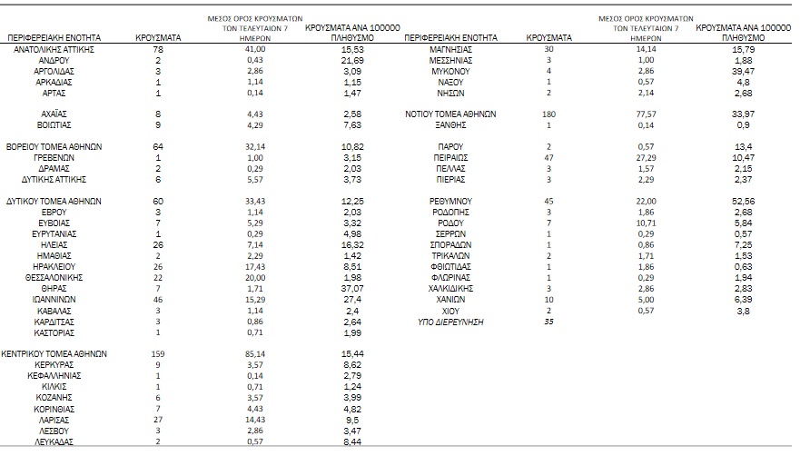 Αναλυτικά, η διασπορά των νέων κρουσμάτων ανά περιφερειακή ενότητα: