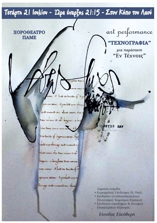 Η παράσταση με τίτλο ”ΤΕΧΝΟΓΡΑΦΙΑ” που παρουσιάζει το ΧΟΡΟΘΕΑΤΡΟ ΠΑΜΕ επιχειρεί να αναδείξει ακριβώς τον ρόλο της Τέχνης μέσα απ’ τις πολλές μορφές της, αφού συναντώνται επί σκηνής ο χορός, η ζωντανή μουσική, η ποίηση, η δραματοποιημένη αφήγηση, η ζωγραφική, το βίντεο… Ένα κάλεσμα ψυχικής αλλά και αγωνιστικής ανάτασης κόντρα στη ”σιωπή ” που θέλουν να μας επιβάλλουν…