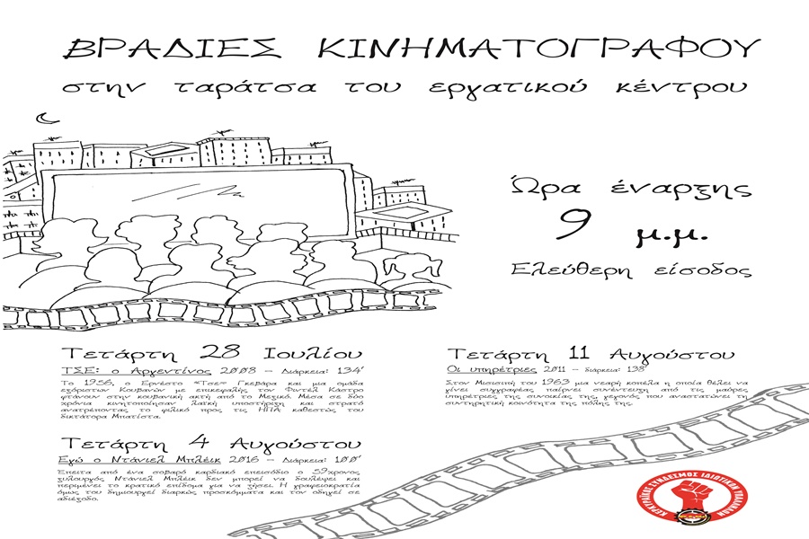 Καλούμε τους εργαζόμενους, τις οικογένειές τους, τον λαό του νησιού μας να αγκαλιάσει και αυτήν την πρωτοβουλία του Σωματείου μας, διασκεδάζοντας και απολαμβάνοντας τις προβολές.