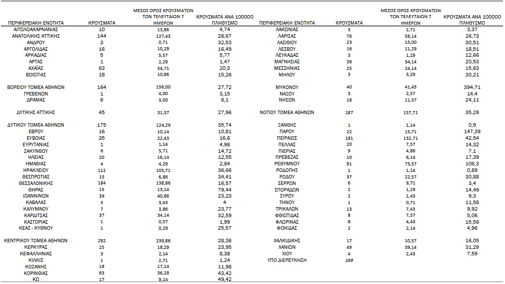 Αναλυτικά, η διασπορά των νέων κρουσμάτων ανά περιφερειακή ενότητα: